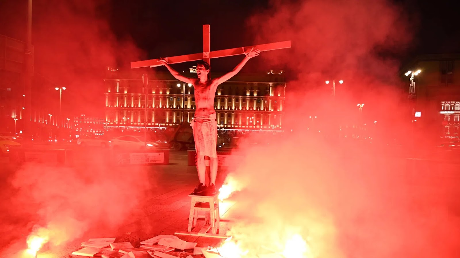 In October 2022, the Moscow City Court sentenced the artist to five years in prison for another public performance which involved a mock suicide attempt.