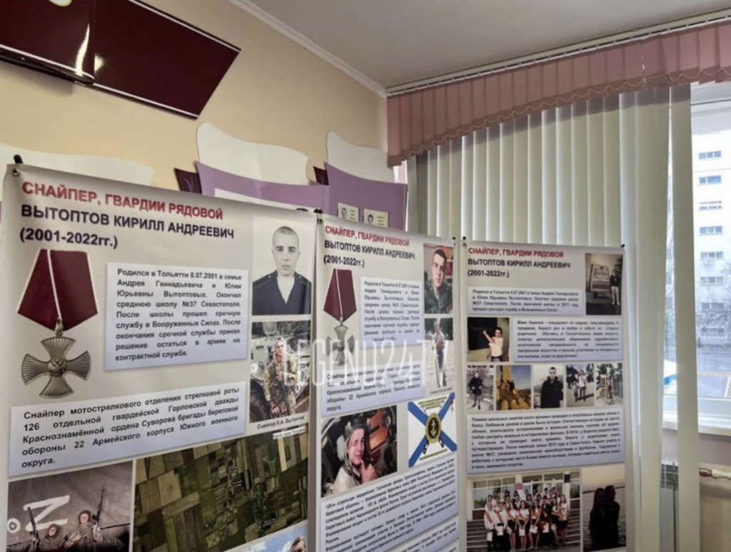 Так, в 37-й школе Севастополя появились парты героев с данными о герое СССР Степане Неустроеве и погибшем под Херсоном российском снайпере Кирилле Вытоптове.