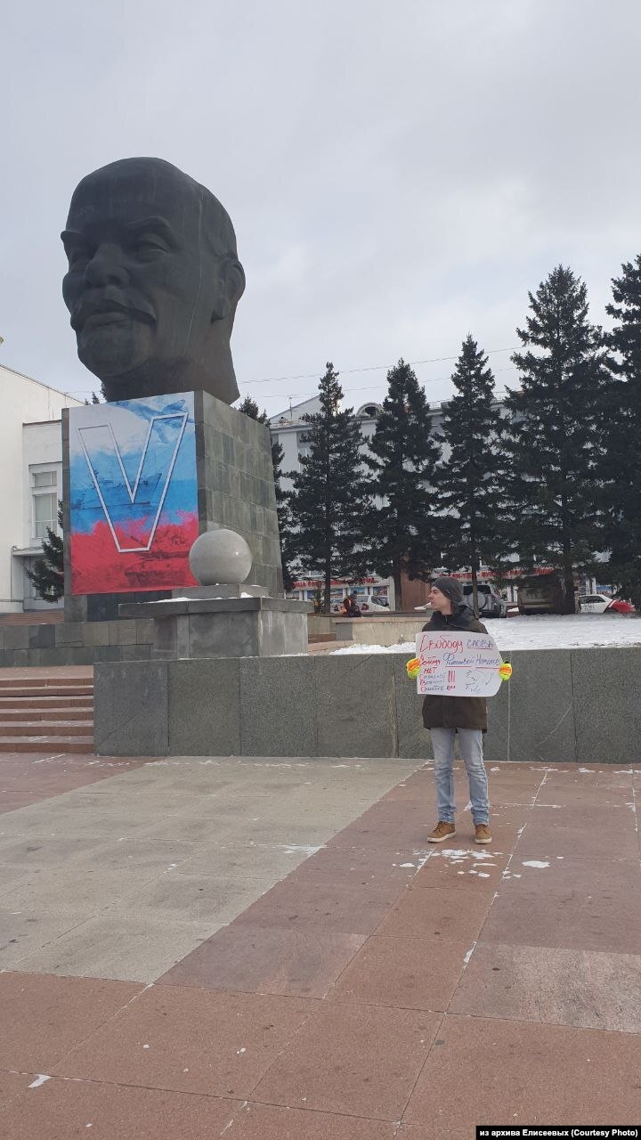8 декабря Илья вышел на площадь Ленина в центре Улан-Удэ, достал из портфеля плакат, который он накануне нарисовал фломастером, и решил "постоять тут, пока жена пару фото издалека сделает".