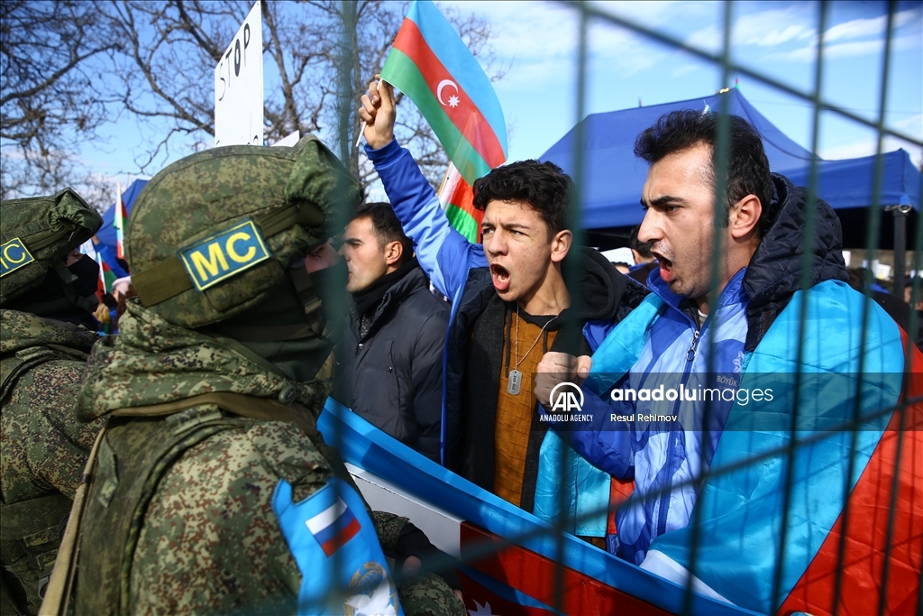 Люди, называющие себя экологическими активистами, вышли с плакатами против бездействия российских миротворцев. Они также потребовали от командующего российскими силами генерала Андрея Волкова вступить с ними в диалог и скандировали лозунги об угрозе экологии региона. Собравшиеся требовали "предотвратить незаконную эксплуатацию армянами природных ресурсов" на территории, которая формально считается частью Азербайджана. Ранее министерство иностранных дел Азербайджана неоднократно призывало допустить азербайджанских официальных лиц и специалистов на территорию, находящуюся под контролем россиян, для оценки предполагаемой деятельности по добыче полезных ископаемых.