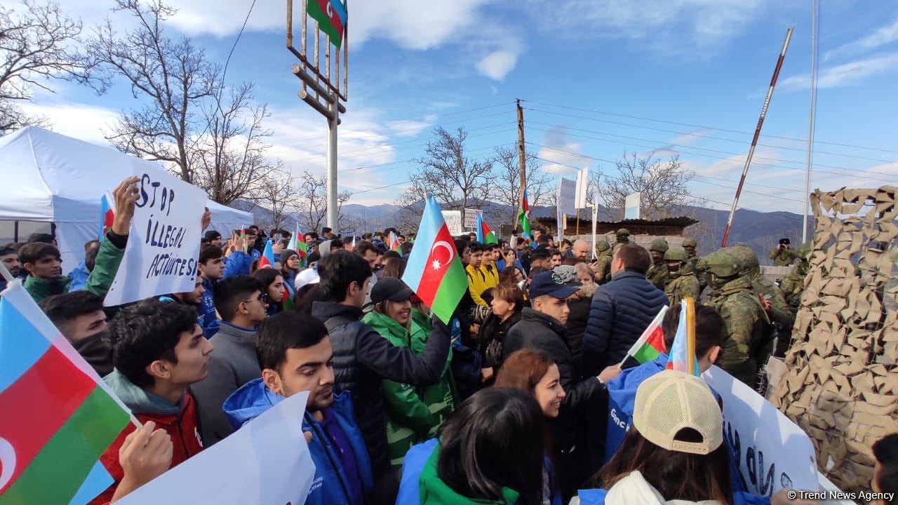 Акция протеста азербайджанцев в Нагорном Карабахе. Фото: Trend TV
