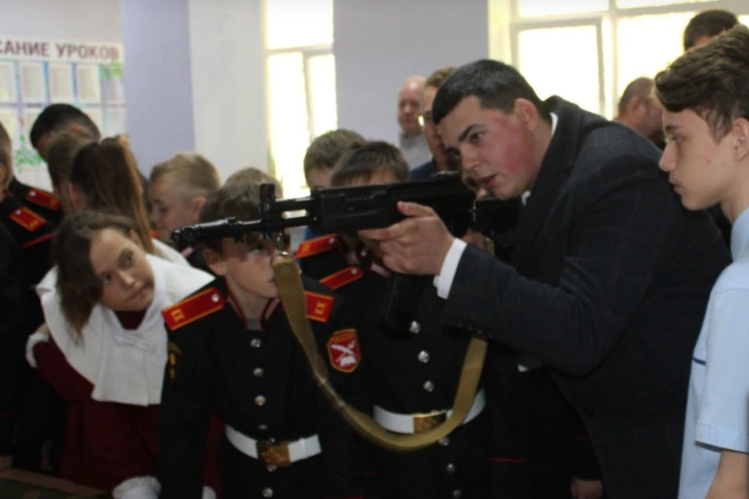 Школьникам в Джанкое показали как стрелять из автомата Калашникова, 12 октября 2022. Фото: Крым.Реалии