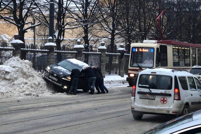 А с утра толкать автобус пришлось пассажирам на Малой Морской.