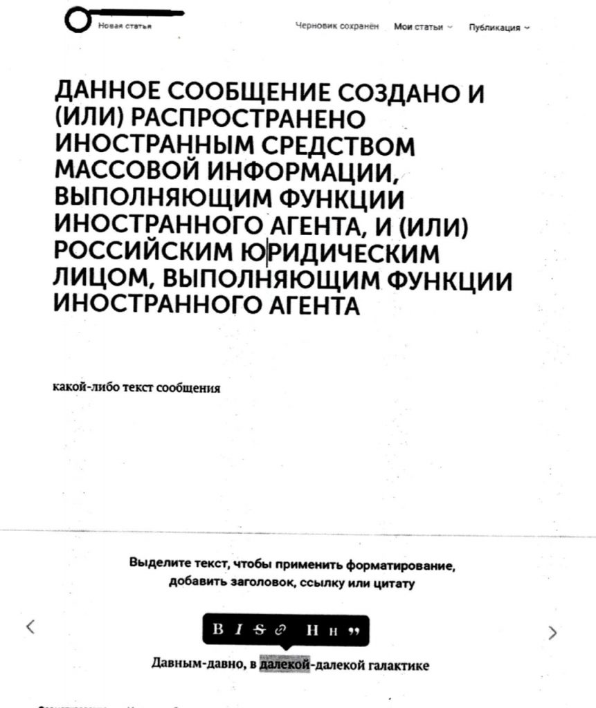 На суде Андреев настаивал на том, что использовал при написании иноагентской маркировки капслок и не мог сделать ее больше. На это представители прокуратуры предложили ему использовать инструменты для форматирования текста, встроенные в пользовательский интерфейс соцсети.