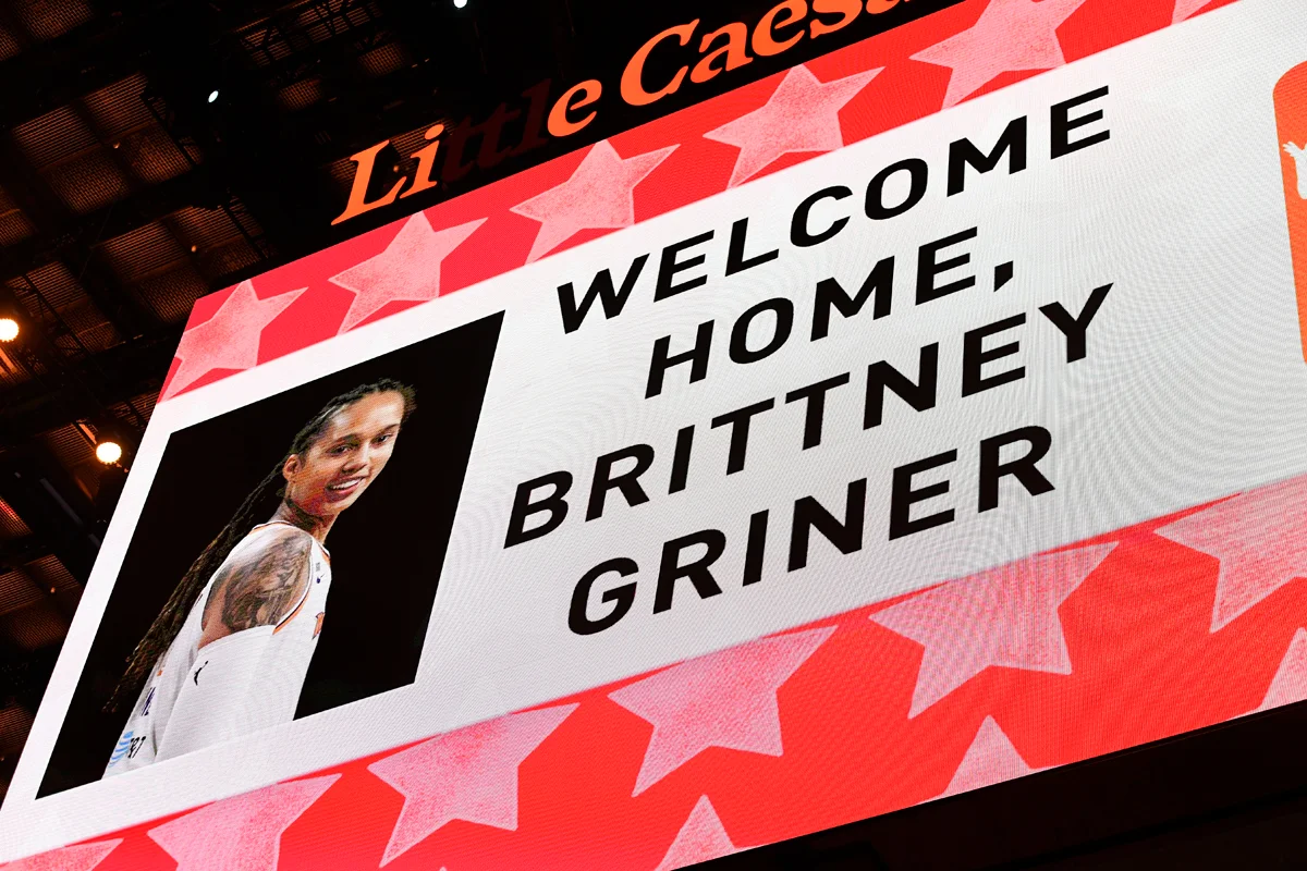 Грайнер известна тем, что в разгар беспорядков 2020 года, разразившихся в связи со смертью Джорджа Флойда, она протестовала против традиционного исполнения государственного гимна США перед началом матчей и заявила, что на протяжении всего сезона не выйдет на площадку, пока он несется из репродукторов. Поэтому сайт консервативного телеканала «Фокс ньюс» встретил ее заголовком «Бриттни Грайнер возвращается домой. Будет ли она вставать при исполнении гимна теперь, когда она вернулась в США?».