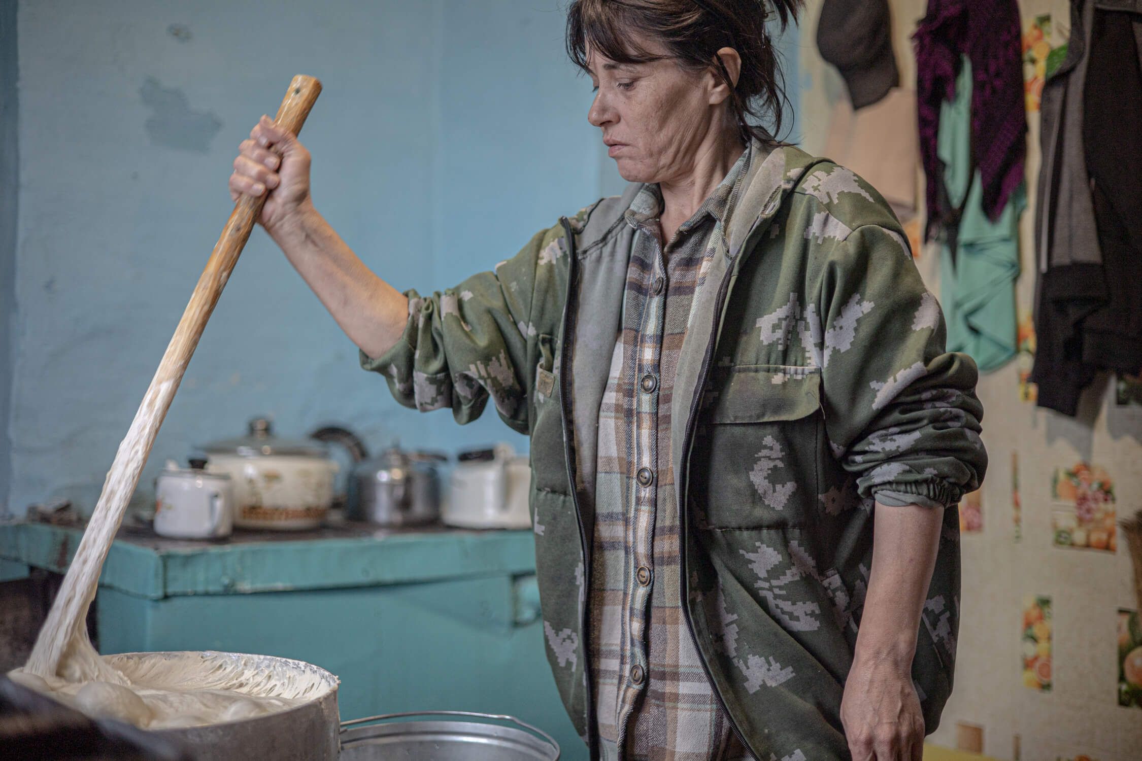 As she vents, Galina pours batter into a cast iron mold. Today, she’s baking bread — 15 loaves of it. Outside companies don’t supply bread to the local stores; it’s too expensive.