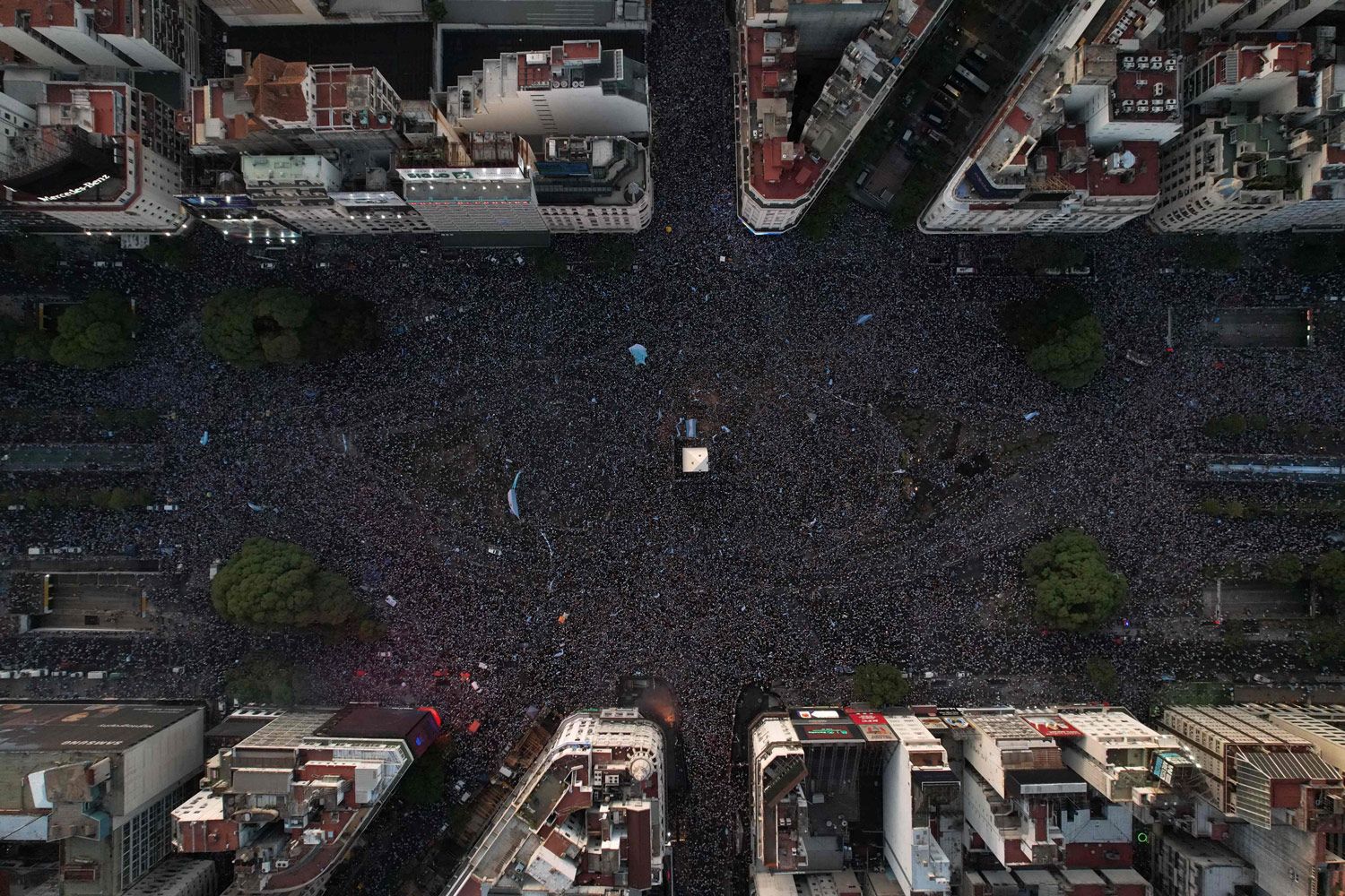 Сборная Аргентины по футболу 18 декабря в серии пенальти обыграла Францию в финале ЧМ-2022 и стала чемпионом мира в третий раз в истории. Первым Кубок мира над головой поднял Лионель Месси: до сих пор одним из главных аргументов критиков футболиста, которого многие называют лучшим игроком в истории футбола, было именно отсутствие звания чемпиона мира — но теперь этот титул у 35-летнего Месси есть, а сам он провел выдающийся турнир, забив на всех его стадиях, в том числе дважды в финале. Сотни тысяч жителей Аргентины вышли на улицы, чтобы отпраздновать победу — первую для страны со времен Диего Марадоны. Вот как это было.