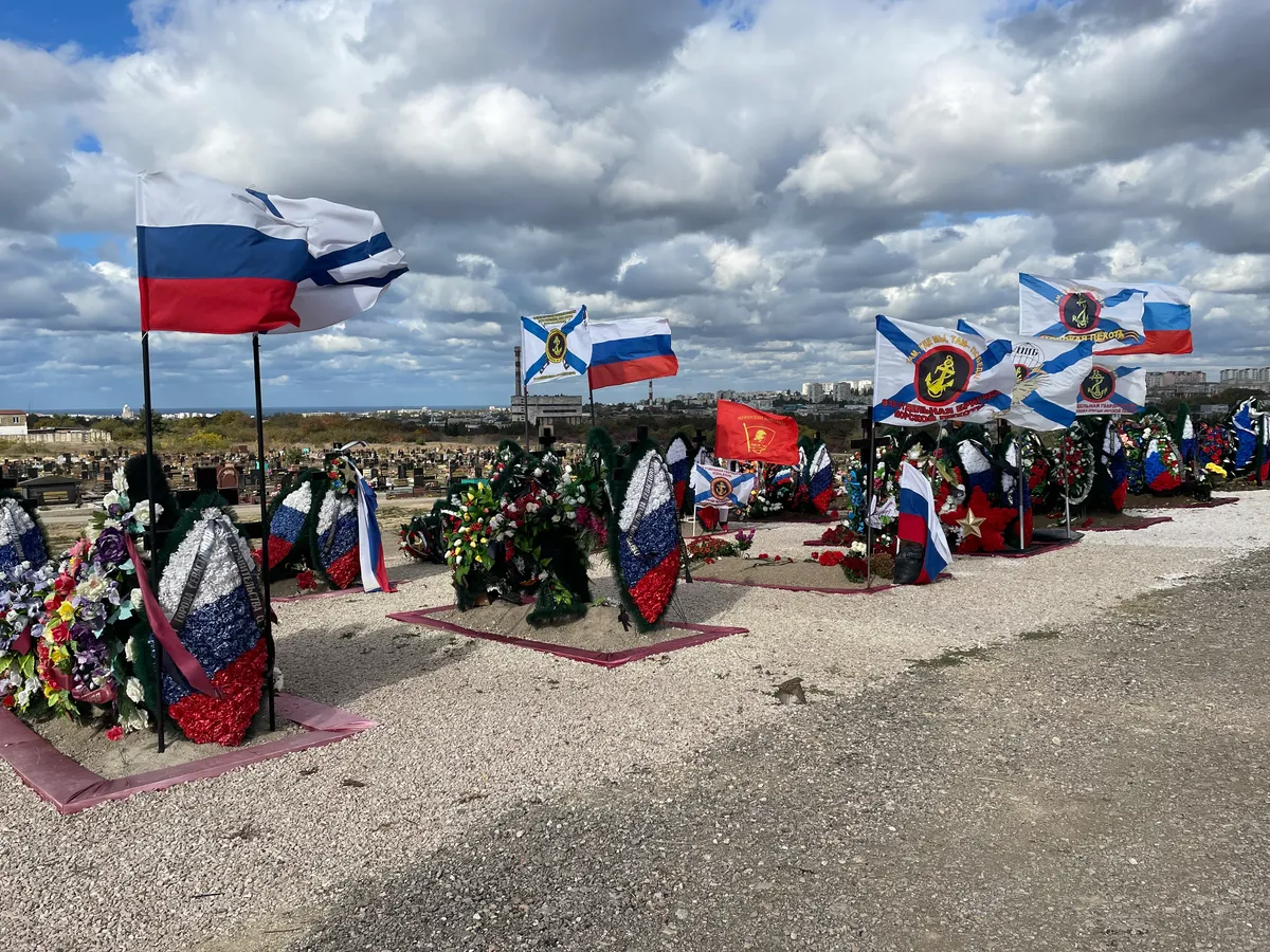 Оценить последствия войны хотя бы частично можно на севастопольском кладбище, расположенном в микрорайоне «5-й километр». На окраине погоста — около сотни свежих могил. Здесь с административной помпой хоронят погибших в Украине. Над могилами порывы резкого ветра рвут флаги: военной разведки, ВДВ, триколоры, Андреевские флаги и другие знамена военных подразделений.