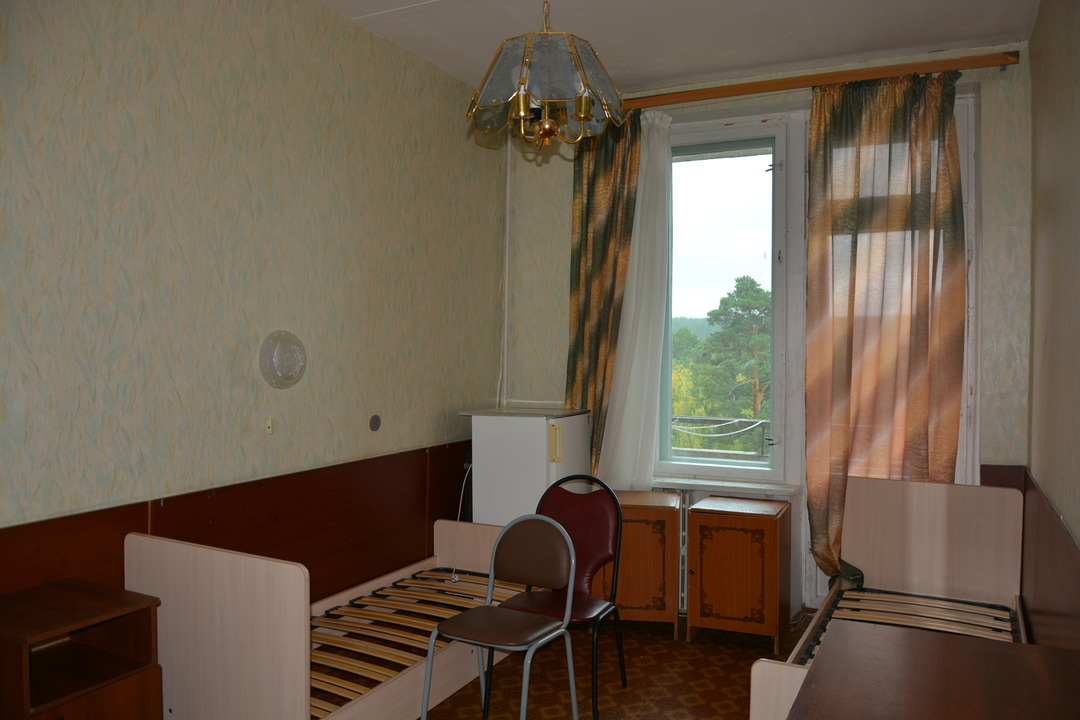 Корреспонденту «Таких дел» удалось побывать в арендуемых «Добром» помещениях санатория. Это номера третьей категории — с кроватями, тумбочками, стульями, собственным санузлом, балконом и видом на сосновый бор. На этажах в коридорах сушатся матрасы, в бытовой комнате — полотенца и белье. На девятом этаже, где жила большая часть постояльцев, чувствуется неприятный запах.