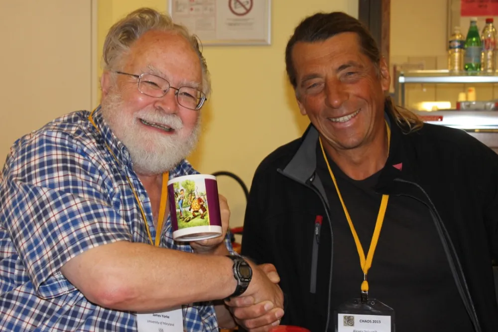 А на первый: теория хаоса — это достаточно модная вещь в последнее время. Но на самом деле теория хаоса возникла еще в работах Анри Пуанкаре (работа Пуанкаре была написана на приз короля Швеции Оскара II в 1890 году). Затем в 1918 году два французских математика — Гастон Жюлиа и Пьер Фату — написали работы по комплексной динамике на конкурс Парижской академии наук. Там впервые появились хаотические траектории, фракталы и множество Мандельброта. Потом эти результаты были забыты и тема снова возникла в работах украинского математика Александра Шарковского2 в 1964 году. Одна из его работ была тогда опубликована, она очень интересная и проливает свет на чередование бифуркаций в нелинейных (квадратичных) системах с параметром. Почти в то же время появились работы американского метеоролога Эдварда Лоренца с его странным аттрактором, австралийского биолога Роберта Мэя с хаотическим поведением простейших моделей популяционной динамики и наконец «Период три означает хаос» (Period three implies chaos, 1975) американских математиков Джеймса Йорка (James A. Yorke) и Ли Тяньяня (Tien-Yien Li), где, собственно, и было предложено название этому направлению исследований: теория хаоса.