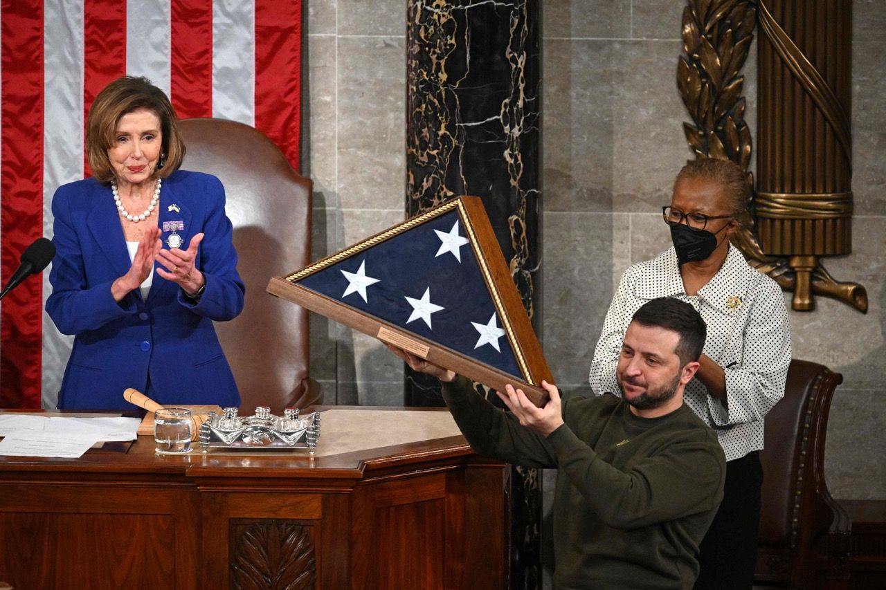 Во время своего выступления Зеленский подарил конгрессменам флаг Украины