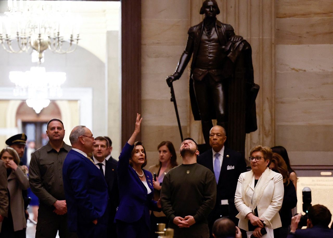 После пресс-конференции Владимир Зеленский направляется в Капитолий, где он выступит перед обеими палатами Конгресса.