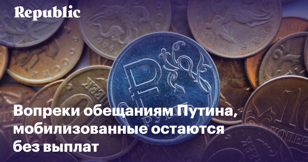 Вопреки заверениям российских властей о принимаемых мерах поддержки военных и мобилизованных, в действительности дела обстоят иначе. Из регионов продолжают поступать сообщения о том, что призванные еще в сентябре на фронт резервисты до сих пор не получили ни копейки из обещанных Владимиром Путиным выплат. Из-за этого, например, семья в Свердловской области рискует к Новому году остаться на улице, потому что ей нечем платить за квартиру.