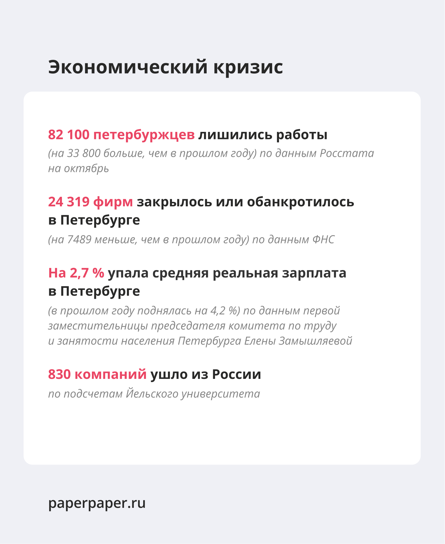 Реальные итоги 2022 года для Петербурга и России. Война, протест и кризис — в цифрах