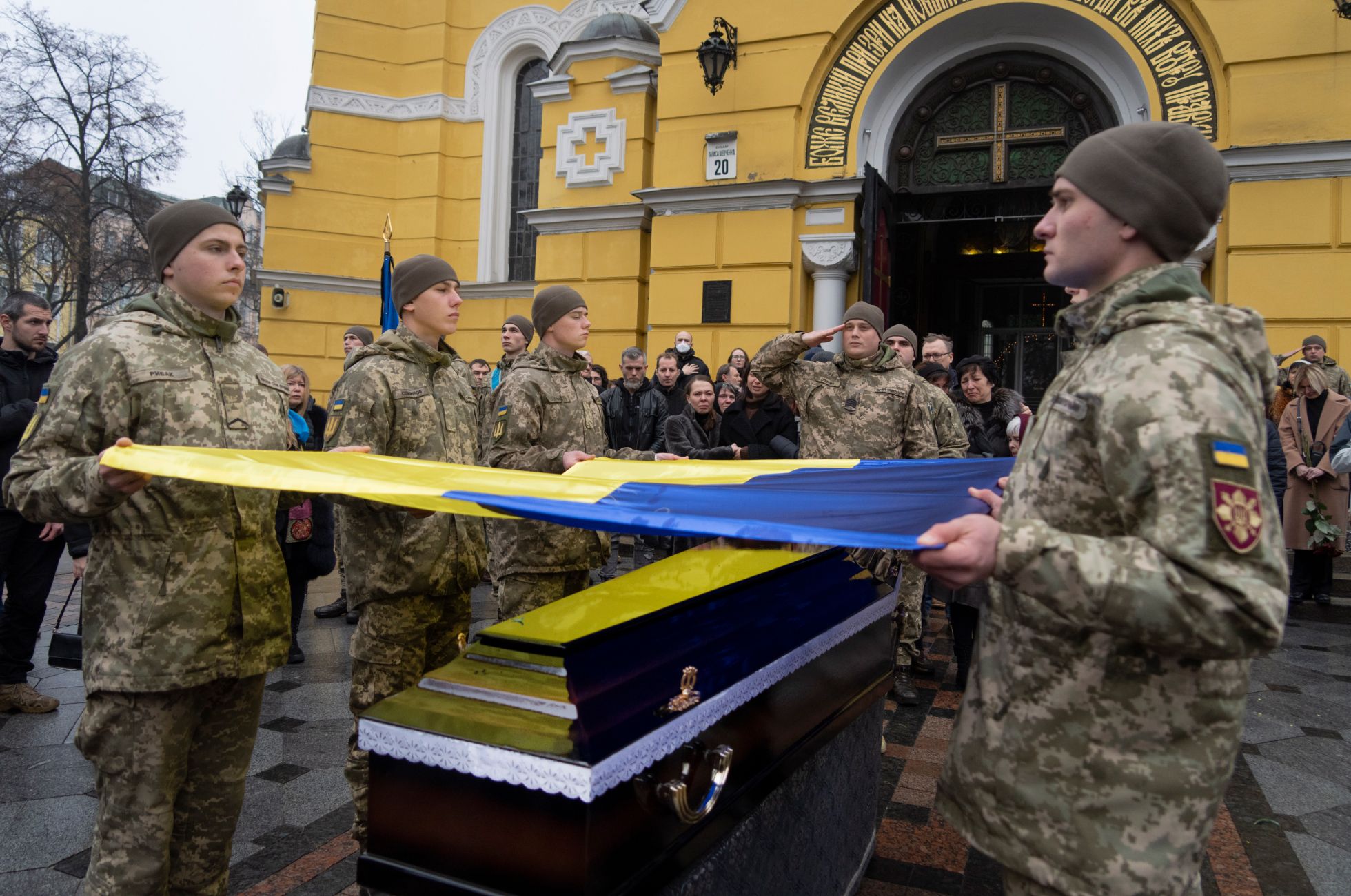 Церемония прощания во Владимирском соборе с Владимиром Ежовым, одним из разработчиков украинской видеоигры «S.T.A.L.K.E.R.», погибшим в боях за Бахмут в Донецкой области 22 декабря.