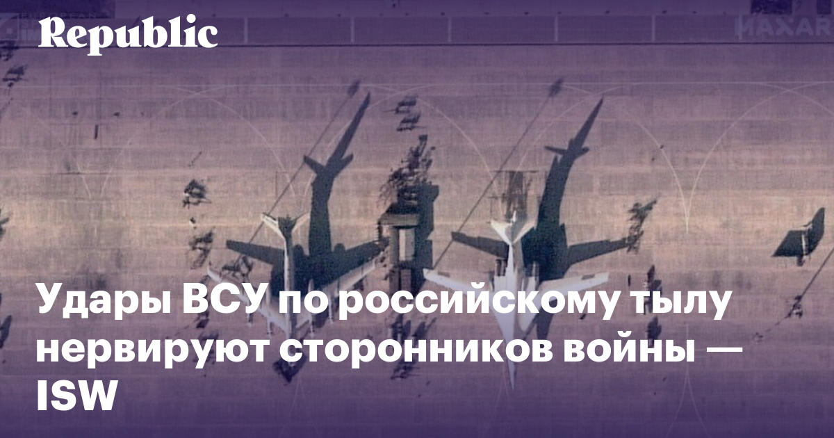 Украинские удары по военным объектам в глубоком российском тылу — такие как вчерашняя очередная атака беспилотника по аэродрому в Энгельсе Саратовской области — вызывают сильную нервозность у провоенного сообщества. Поддерживающие войну люди вынуждены из-за этого резко критиковать работу российской ПВО. Об этом говорится в ежедневной сводке американского Института изучения войны (ISW).