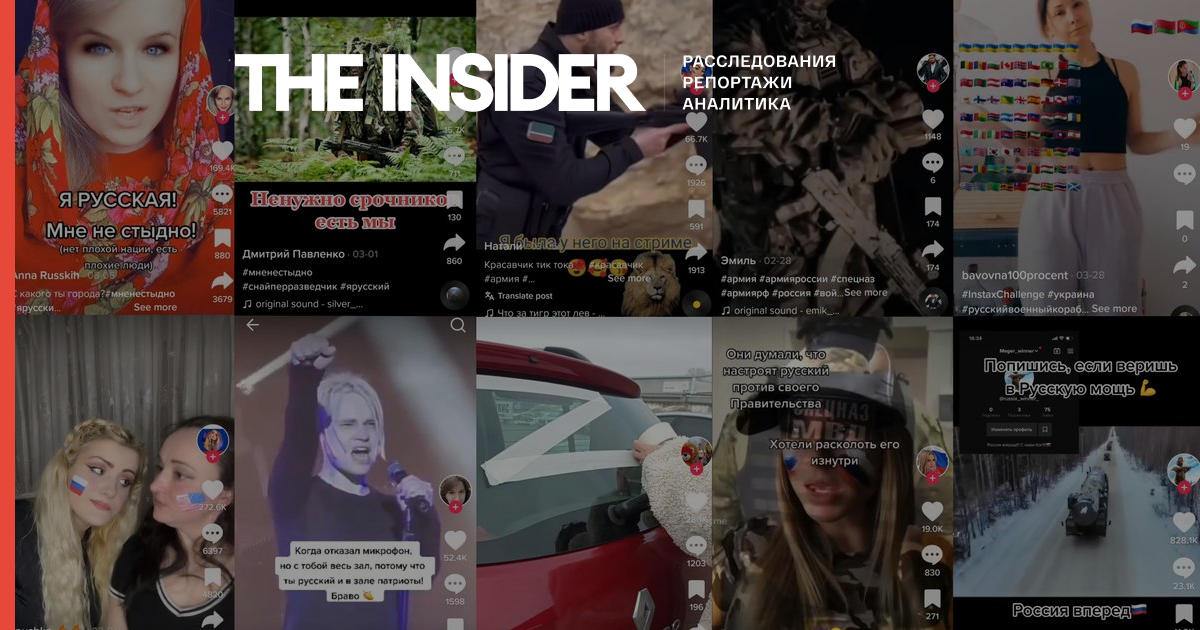 Прокремлевский контент в TikTok с самого начала стал выделяться не только своим количеством, но и контрастом с привычным контентом для в целом аполитичной соцсети — не говоря уже о том, что это самая «молодая» соцсеть (76% аудитории — до 25 лет), а в этом демографическом сегменте искренних сторонников власти не так много. Согласно данным агентства NewsGuard, контент, содержащий фейки об Украине, алгоритмы показывали даже тем пользователям, которые только что зарегистрировались или никогда ранее не интересовались военным конфликтом. Статистика сервиса демонстрирует, что за первые несколько месяцев тиктоки, залитые с хэштегами #zанаших и #мненестыдно, собрали более 2 млрд просмотров. Еще около миллиарда собрали тиктоки, продвигающие ЧВК Вагнера.