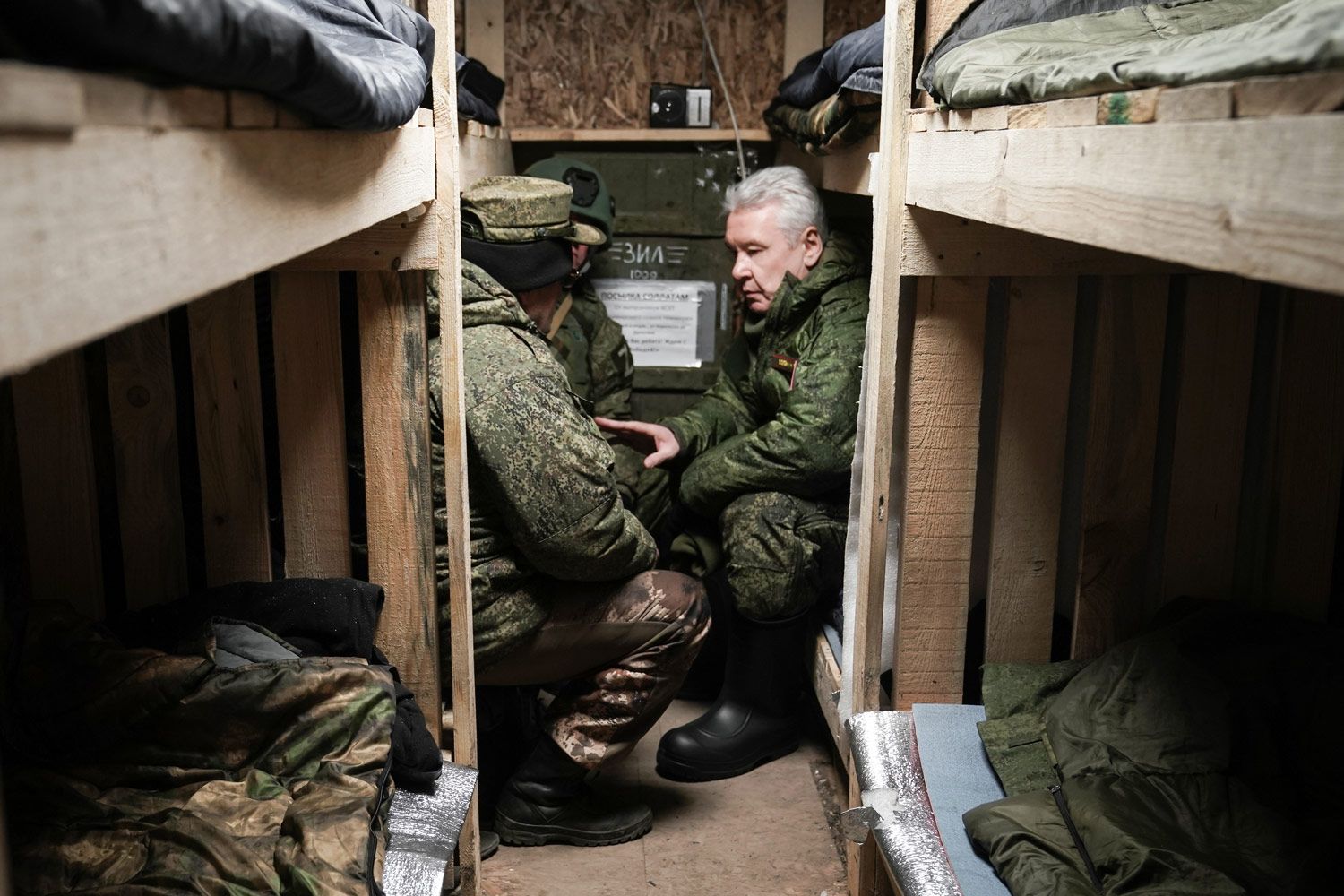 Пресс-служба мэра и правительства Москвы /ТАСС Сергей Собянин с военными из Москвы во время своей поездки в зону «специальной военной операции» в декабре 2022-го