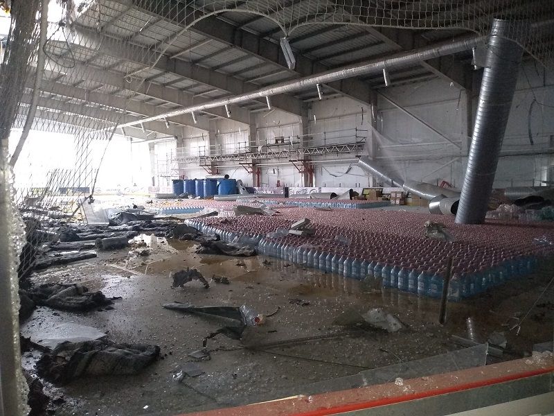 В частности, на фото последствий удара можно увидеть бутыли воды и матрасы, которые находились внутри арены.