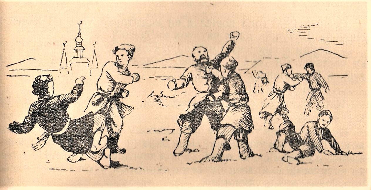 Кулачный бой – эта молодецкая забава уходит своими корнями в седую славянскую древность и впервые упомянута Нестором ещё в 1048 г. Историки утверждают, будто регулярным проведением таких "состязательно-игровых мероприятий" русичи обеспечивали себя бойцовскими качествами – формировали у молодых и поддерживали у зрелых.