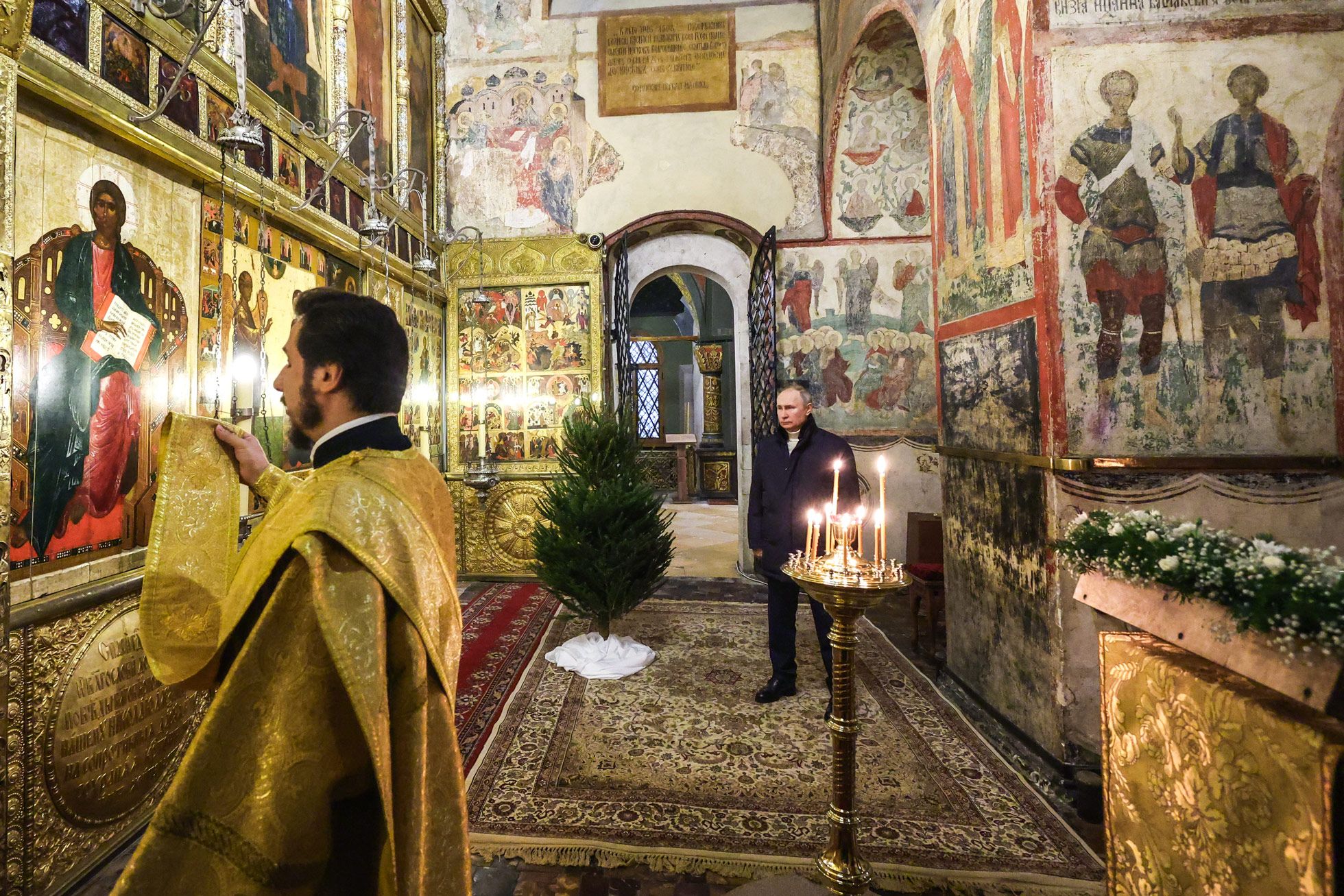Mikhail Klimentev / Press Service of the President of the Russian Federation / TASS Russian President Vladimir Putin attended Christmas services at the Cathedral of the Annunciation in the Kremlin, during the evening of January 7. Interfax reports that Putin attended alone, without other parishioners. Several high-ranking members of the Russian Orthodox clergy met Putin and attended the service. Putin also celebrated Christmas alone in January 2022, in a church on the grounds of his estate at Novo-Ogaryovo. Last year, the Kremlin explained that the president was taking “epidemic precautions.” In previous years, including 2019, 2020, and 2021 Putin has attended Christmas services with other people. The Russian president has stayed in Moscow for Christmas twice before, in 2000 and 2001, says Interfax.