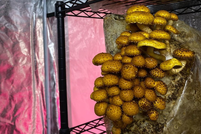 Первоначально ферма располагалась в его квартире, со временем для производства нашли отдельное помещение. Там — в специальном боксе-теплице — выращивают необычные и экзотические грибы: например, розовые вешенки, ежовики и золотые еноки.
