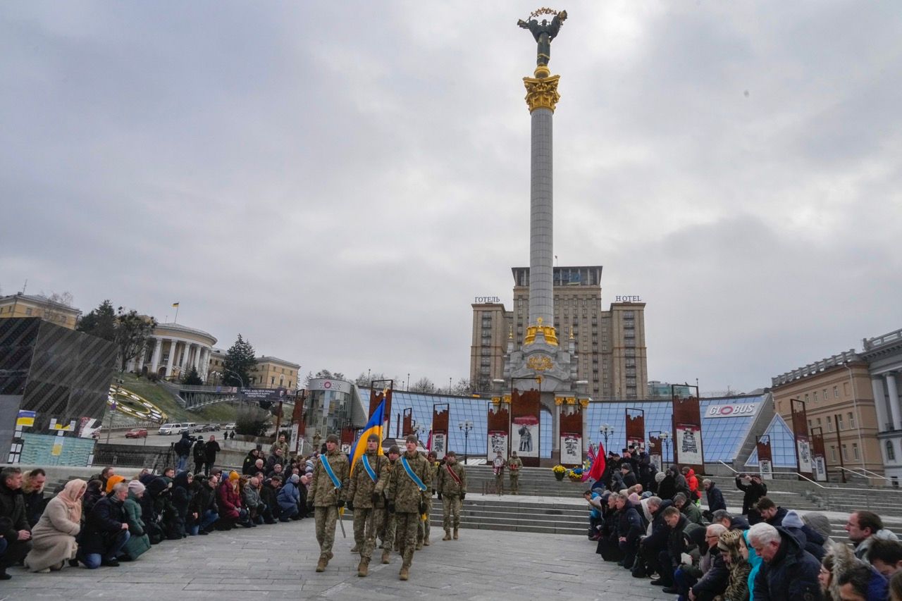 В Киеве на Майдане Незалежности прошла церемония прощания с офицером Вооруженных сил Украины Олегом Юрченко. Он погиб 2 января возле Бахмута Донецкой области.
