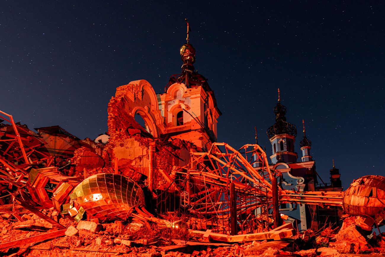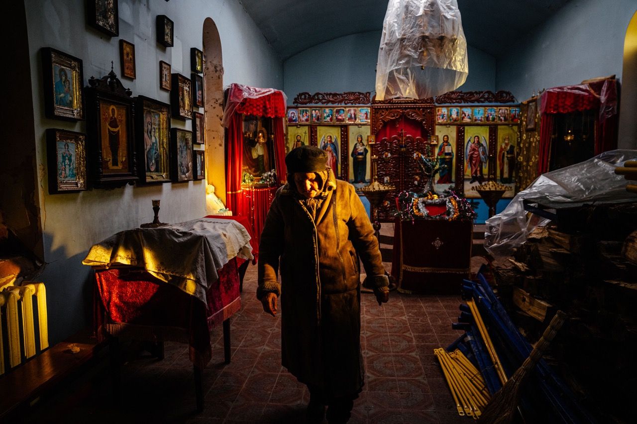 Жительница города Северск Бахмутского района Донецкой области Украины в православной церкви, 8 января 2023 года