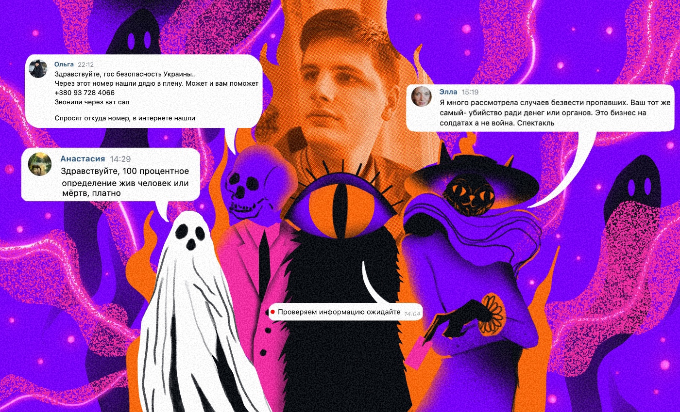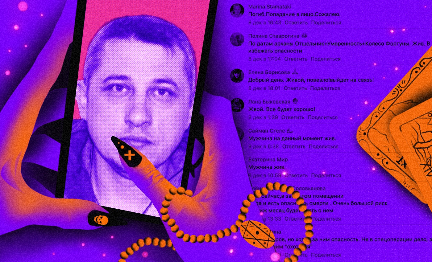 В неведении родные пропавших обращаются к ясновидящим, нумерологам и гадалкам — либо по совету знакомых, либо онлайн, случайно наткнувшись в интернете на объявление о магических услугах. Те, кто деньги тратить не хочет, идут в тематические паблики «ВКонтакте». Если раньше люди, называющие себя экстрасенсами, обсуждали здесь загадочные преступления или исчезновения, то с началом войны сосредоточились на поиске военных и жителей захваченных Россией территорий.