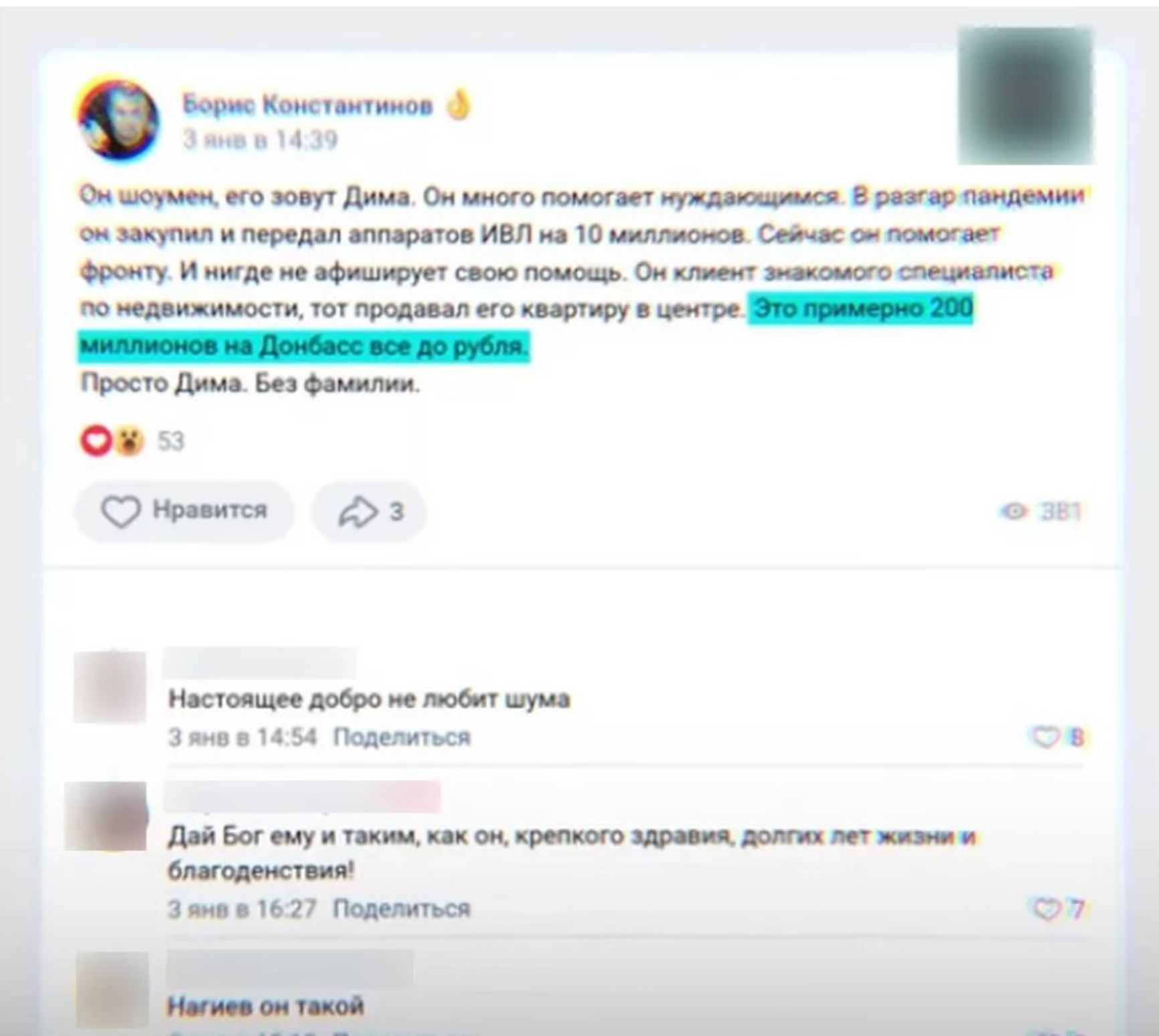 «💰 Дмитрий Нагиев пожертвовал 200 миллионов на поддержку СВО? Шоумен нигде не афишировал свою помощь, но об этом написали в соцсетях.