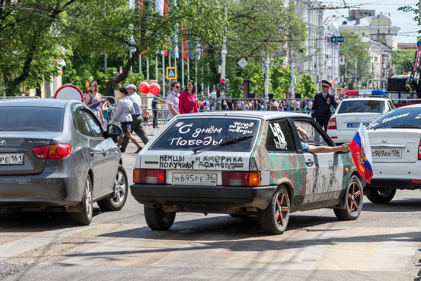 A soldier who had just gone through hell and captured Berlin with his own hands could write “We can do it again” on a sooty Reichstag wall with a feeling of personal dignity. His descendant, who puts a sticker with the same slogan on his car, acquires dignity by dissolving into the “collective body” of the victorious people.