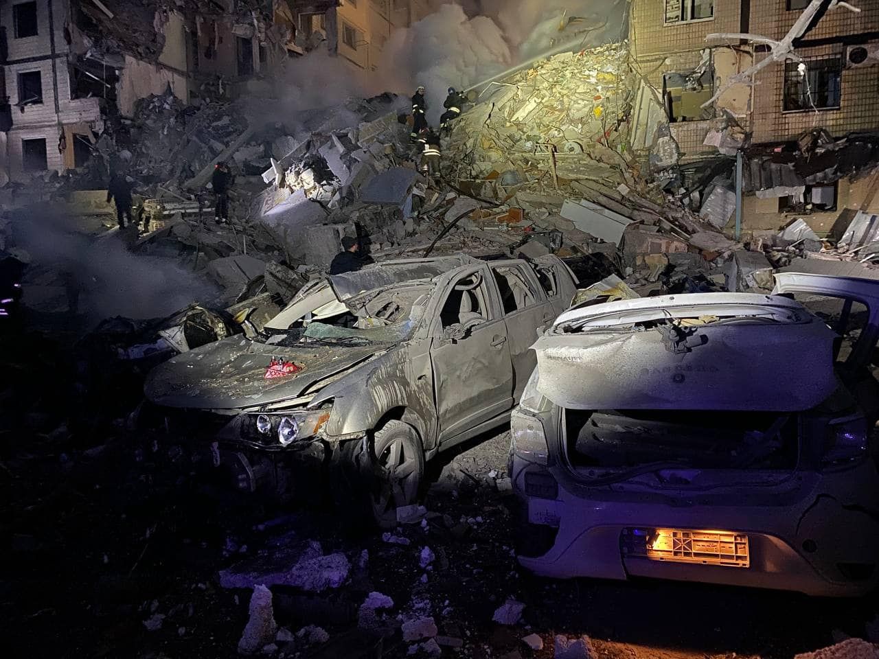 В Днепре в результате этого российского удара разрушен жилой дом. Удалось спасти десятки людей — раненых и травмированных. Им оказывается помощь. Разбор завалов еще продолжается и продлится всю ночь. Сколько всего людей под завалами, пока неизвестно. К сожалению, список погибших растет с каждым часом… Мои соболезнования родным и близким.