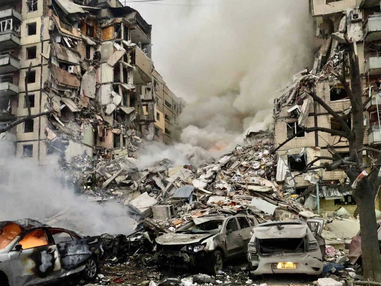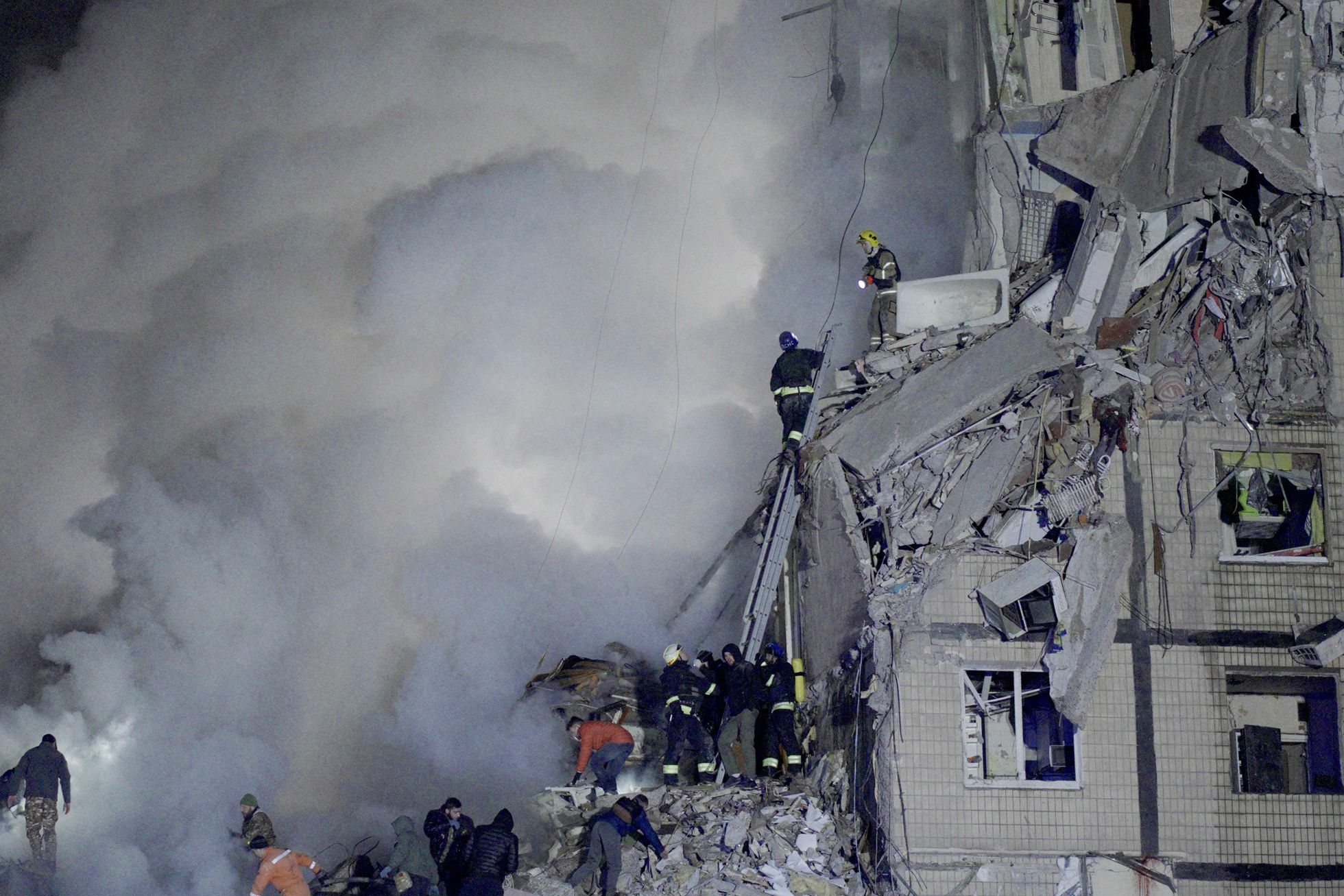 14 января Россия дважды обстреляла территории Украины. Во время второго массированного обстрела одна из ракет попала в девятиэтажку в Днепре. Один из подъездов дома полностью разрушен. Погибли пять человек. Разбор завалов продолжается.
