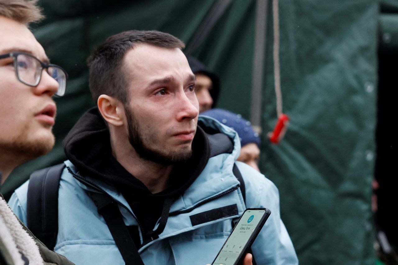 Многие родные и друзья жильцов дома, в который попала ракета, дежурят на улице, ожидая какой-либо информации о своих близких.