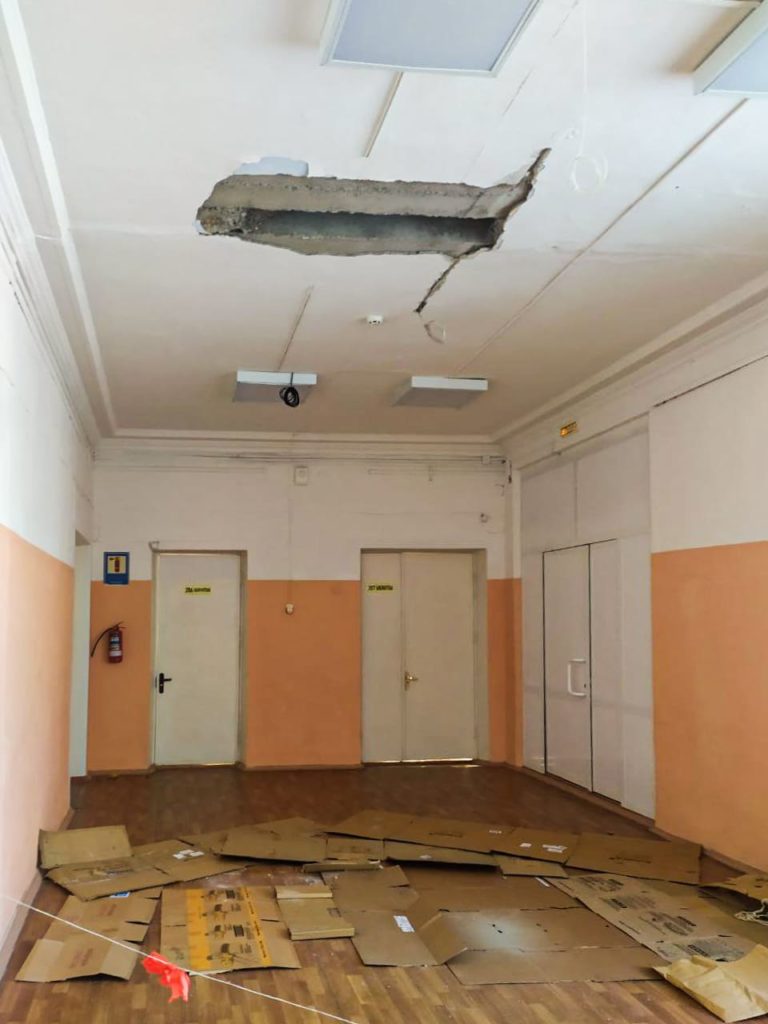 Как вести себя, если упал кусок потолка, детям не объясняли. 13 января школьникам дали выходной. Весь день рабочие замазывали повреждение. К понедельнику, 16 января, потолок отремонтировали. Школа начала работать, как обычно, в одну смену.