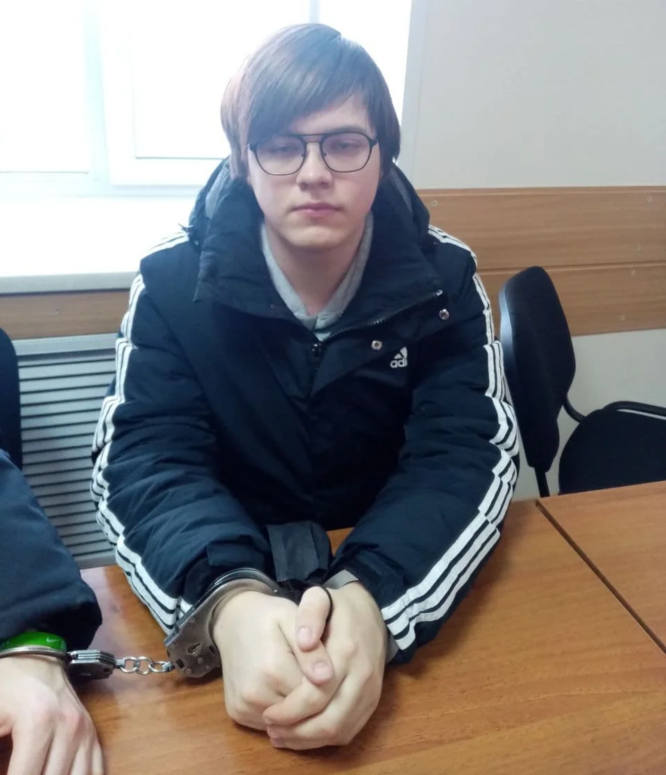 Зимой 2020/21 года на суде из рапорта оперуполномоченного выясняется, что комплекс оперативно-разыскных мероприятий, в том числе личный досмотр 13-летнего, осуществляли сотрудники УФСБ, ЦПЭ ГУ МВД и ОУР местного отдела МВД. Изъято: 5 блокнотов, 8 тетрадей, 21 лист, телефон, металлическая трубка и петарда, «которую использовал в качестве самострела, в качестве поражающего элемента использовал гвозди».