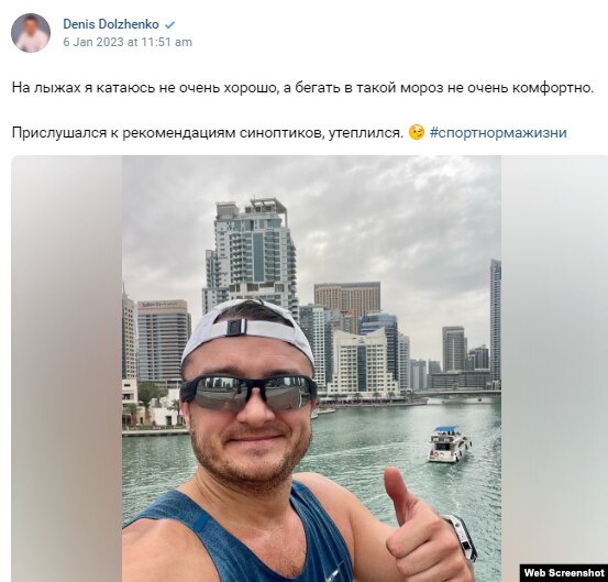 Долженко не стал извиняться за опубликованное фото. Помимо прочего, он выложил ВКонтакте ещё одну фотографию, на которой он изображён в Дубае с дочерью министра обороны России Ксенией Шойгу. Дочь Шойгу за поездку за рубеж никто из официальных лиц не критиковал.