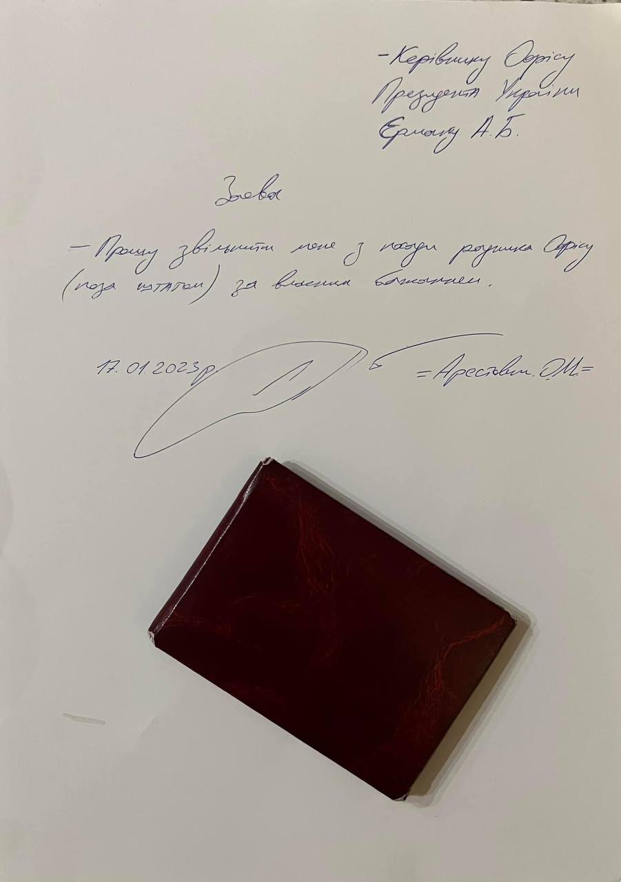 Алексей Арестович подал заявление об уходе с должности внештатного советника офиса президента Украины.