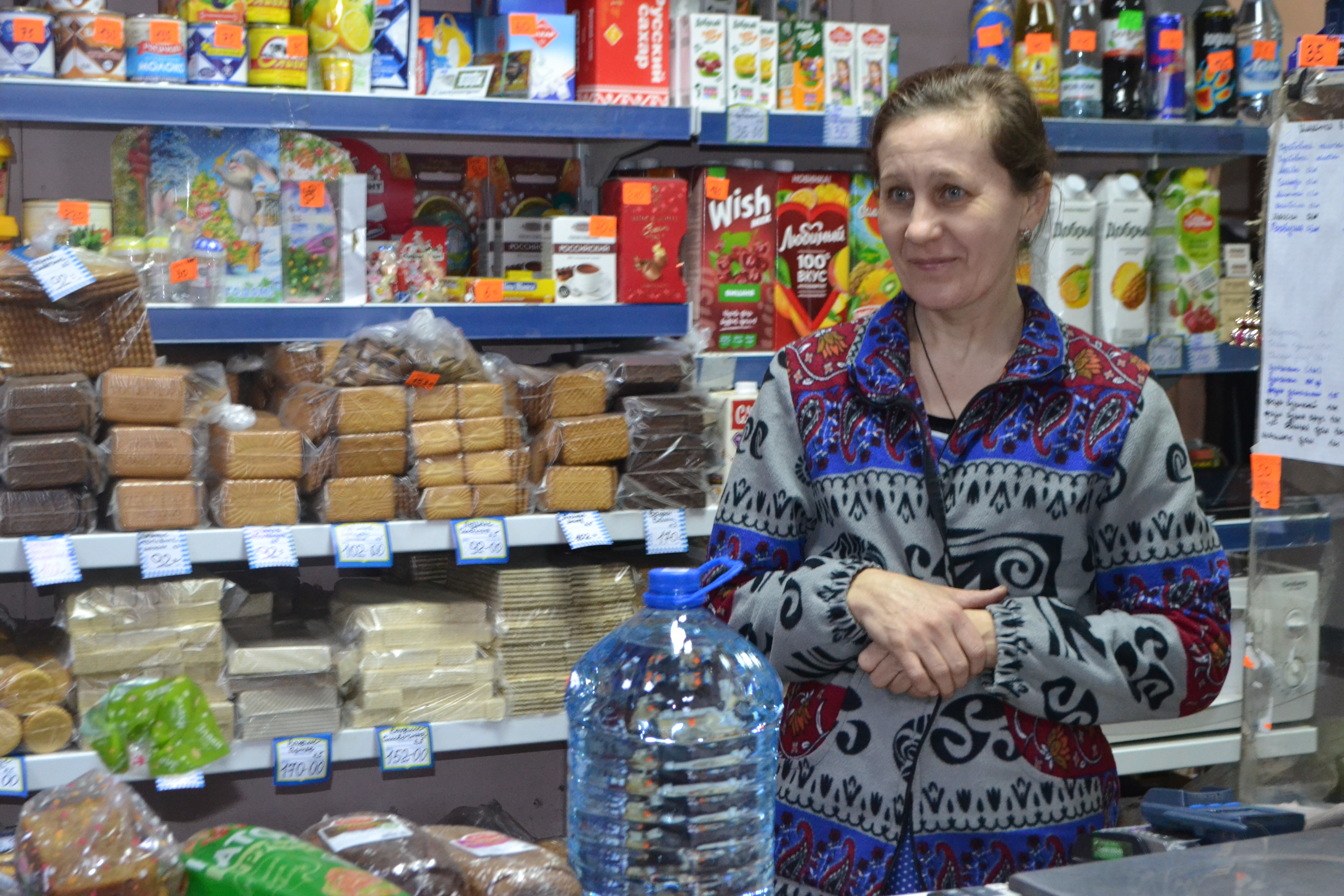 Продавец местного магазина Людмила рассказывает, что вода теперь у нее самый ходовой товар.