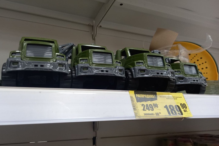 17:06 В одном из новосибирских магазинов сети «Мария-Ра» начали продавать детскую игрушку под названием «Машинка эвакуатор Добрыня военный». На это обратил внимание читатель Тайги.инфо.