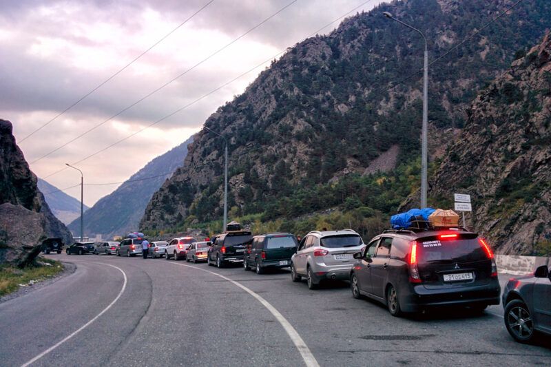 - После объявления в России "частичной мобилизации", огромное количество россиян, не желавших воевать в Украине, пытались выбраться из страны. В итоге на пограничных пунктах с Грузией и Казахстаном образовались огромные пробки и очереди.