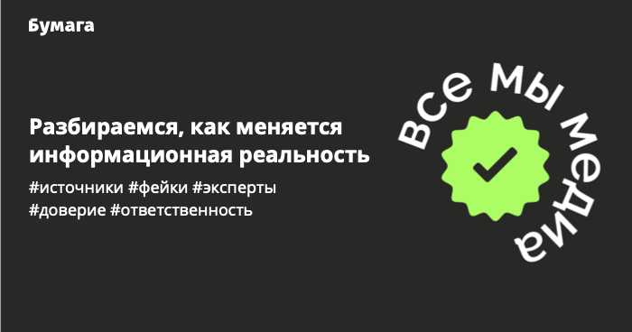 «Бумага» и «7х7» запускают проект «Все мы медиа». В этой рубрике мы рассказываем о региональных и нишевых авторах, ставших авторитетными медиа. Мы также проводим социологические исследования, чтобы выяснить, кому и почему доверяют наши читатели, — и организуем серию фестивалей «Кампус», на которых обсуждаем с экспертами, как мир вокруг нас меняется под влиянием новых медиа и технологий.