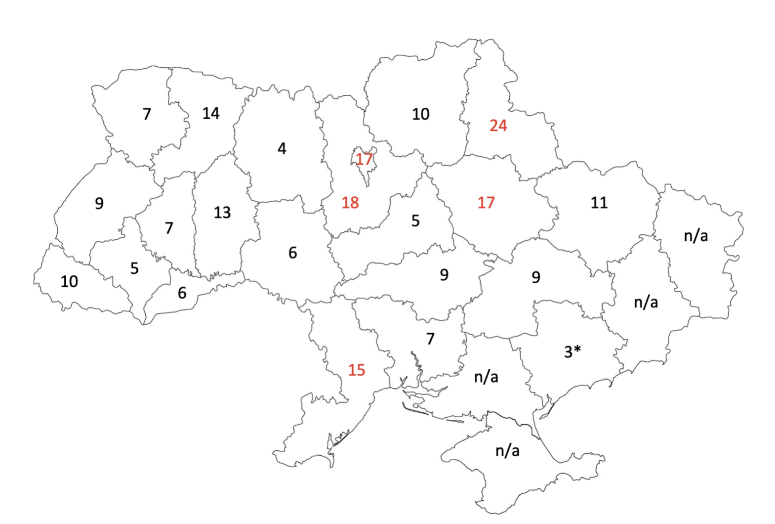 Отключения электроэнергии распределены по стране неравномерно. Экономика Киева, например, сильно пострадала, поскольку город сильно зависит от энергосистемы атомных и тепловых электростанций. В других районах есть осложнения от накопленного ущерба на местных электростанциях, например в Сумской области или в городе Кременчуг (Полтавская область). Эти различия существенны по регионам (рис. 2).