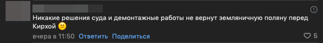 Кроме того, жители заметили, что во время сноса рабочие повредили земляничную поляну у церкви.