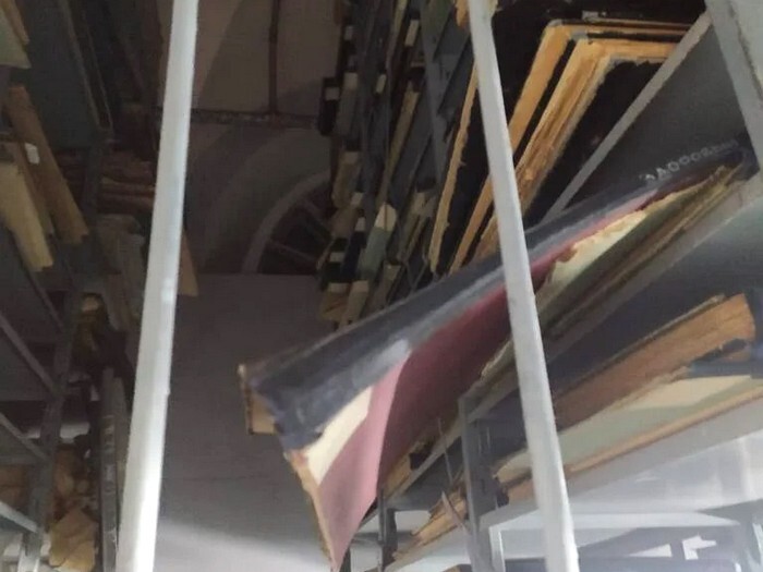• «были испорчены строительной пылью» все исторические фонды, хранящиеся в здании.