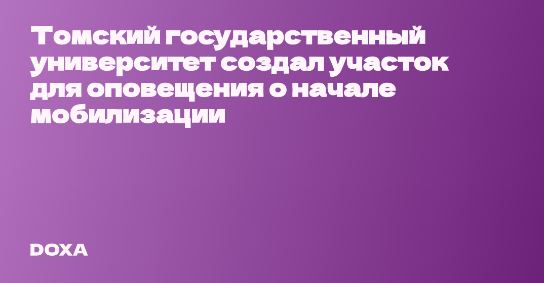 Томский государственный университет создал участок для оповещения о начале мобилизации, сообщает «Можем объяснить». Согласно приказу, участок должен заработать в течение двух часов после получения от военного комиссариата сигнала «Линейка-222».
