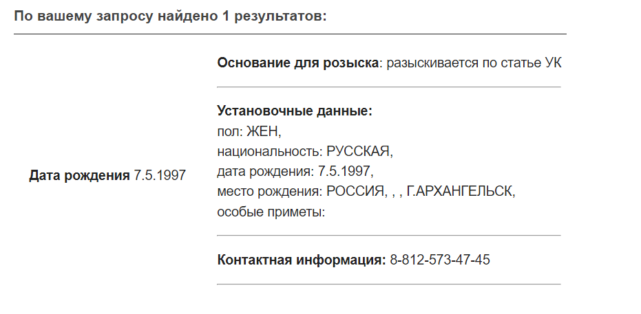 На сайте МВД опубликована информация о розыске Сергеевой.