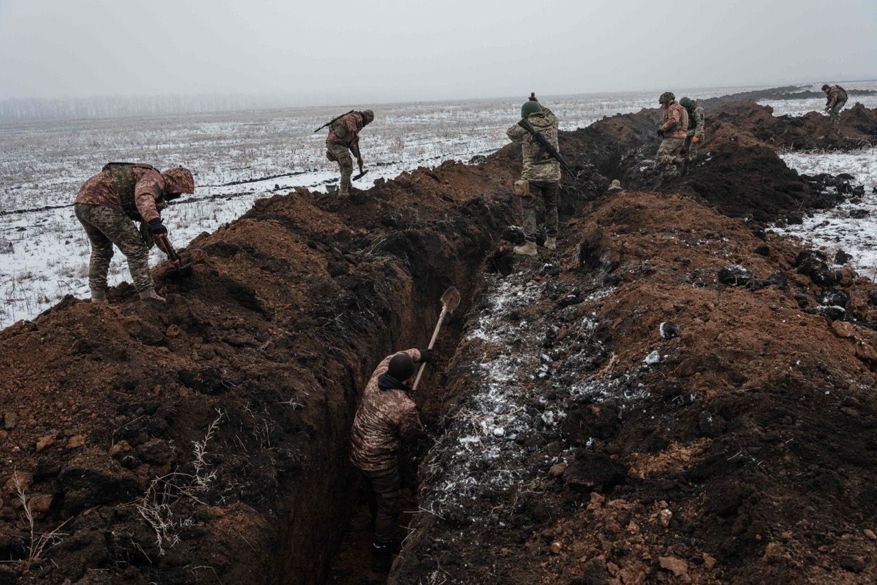 Украинские военнослужащие роют траншею неподалеку от Бахмута. Донецкая область, 1 февраля