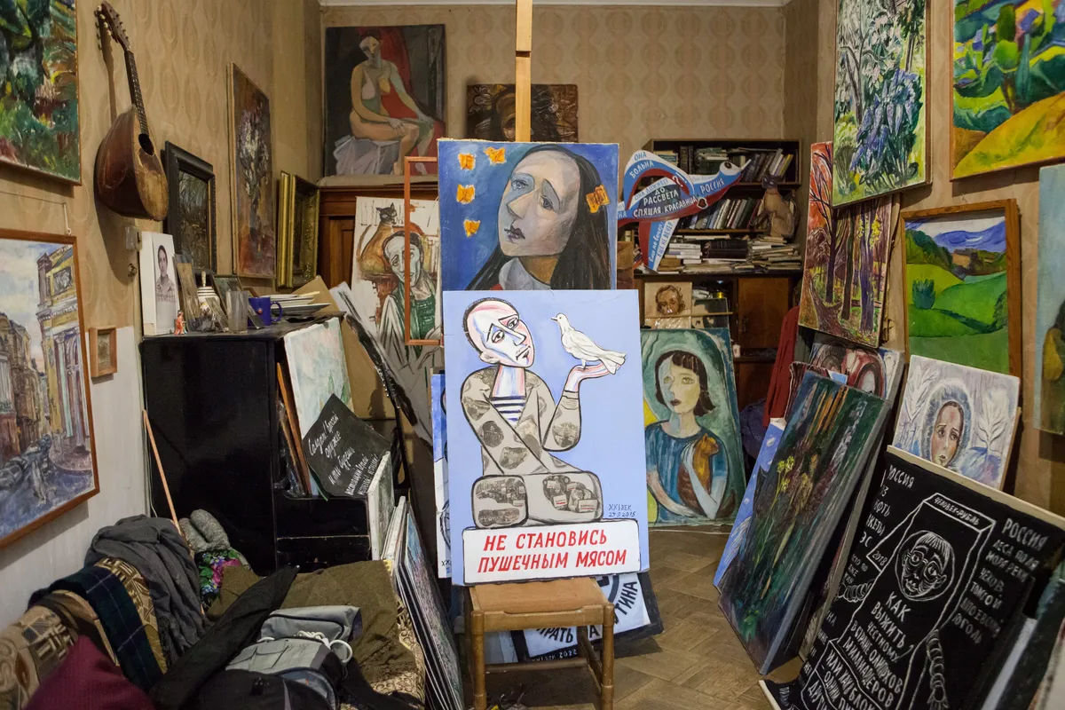 На открытии экспозиции «Мирный арт-протест» 77-летняя петербургская художница Елена Осипова так ответила на вопрос, не боится ли она выставлять свои смелые пацифистские работы сейчас, когда уголовное преследование грозит за каждое неосторожное высказывание: