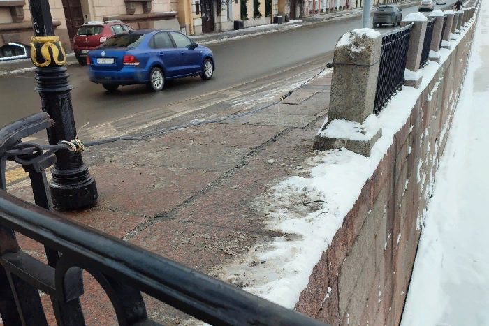 На пропажу фрагмента ограды обратили внимание горожане 5 февраля в паблике «Жители МО Литейный округ» во «ВКонтакте». Автор поста призвал людей быть осторожными, так как на месте ограждения лишь повесили шнур, из-за чего прохожие могли оступиться и упасть вниз.